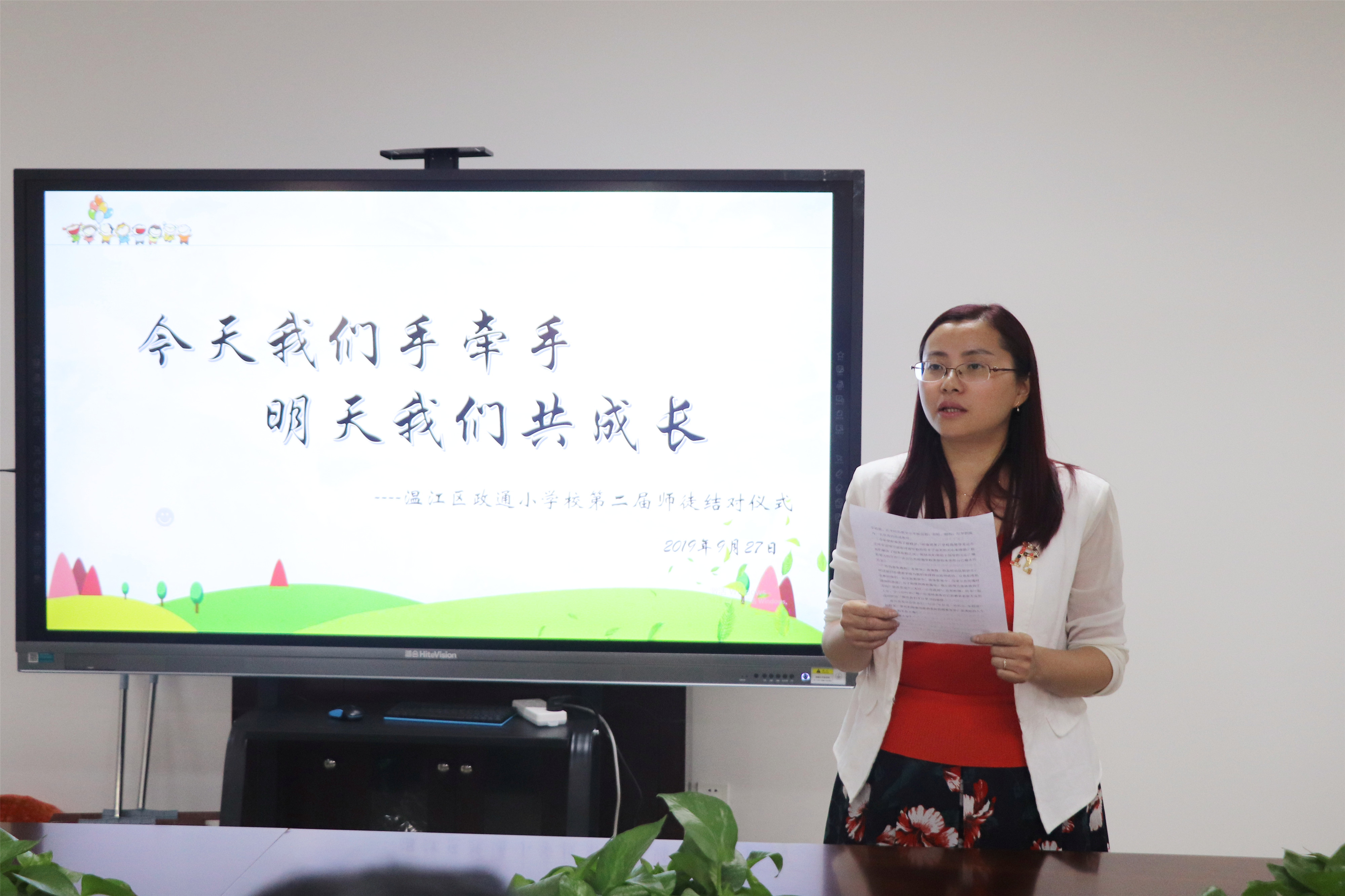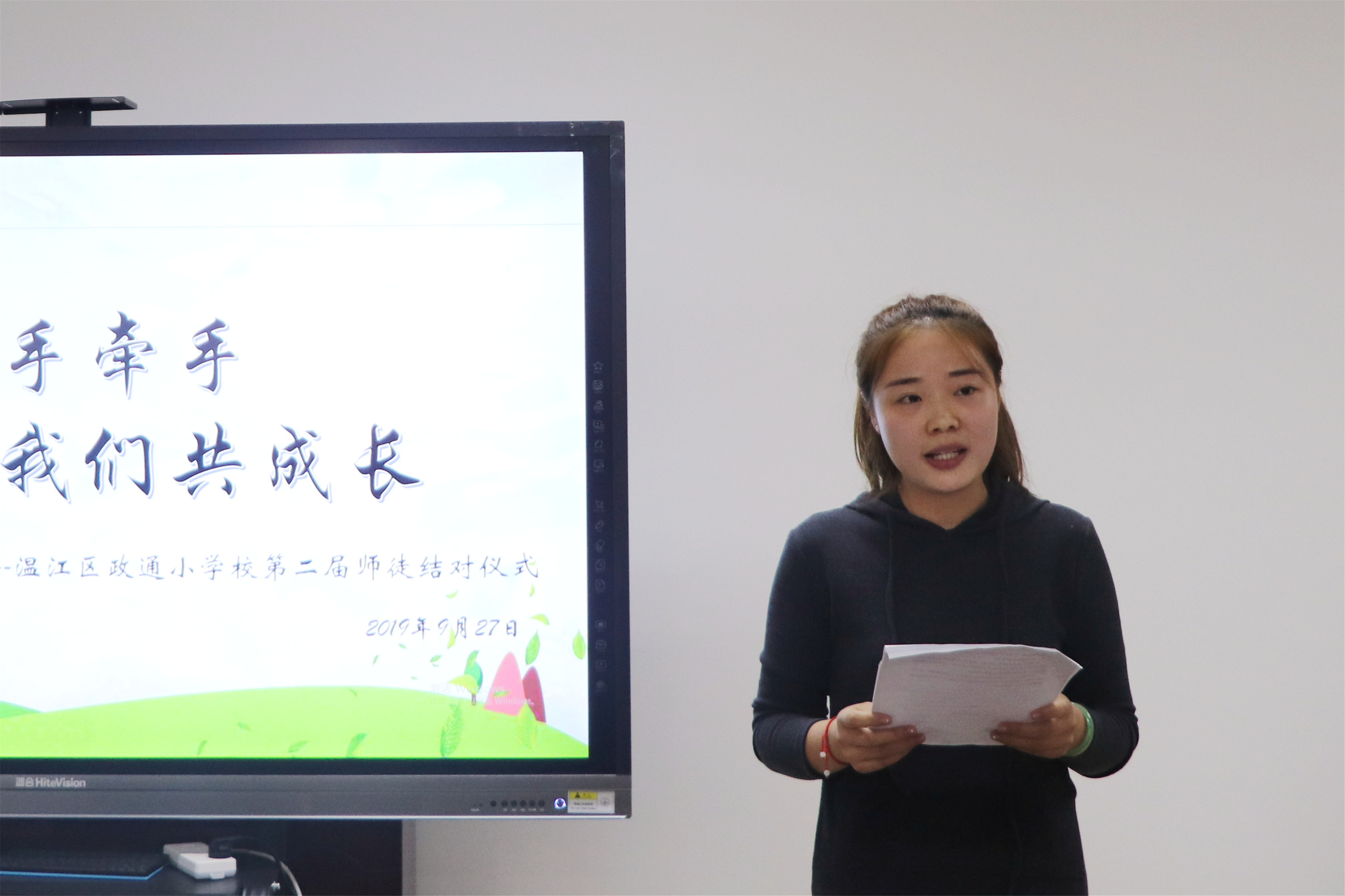 付红丹老师担任主持人,师徒结对仪式在她温文婉约、洋洋盈耳的开场中拉开帷幕。