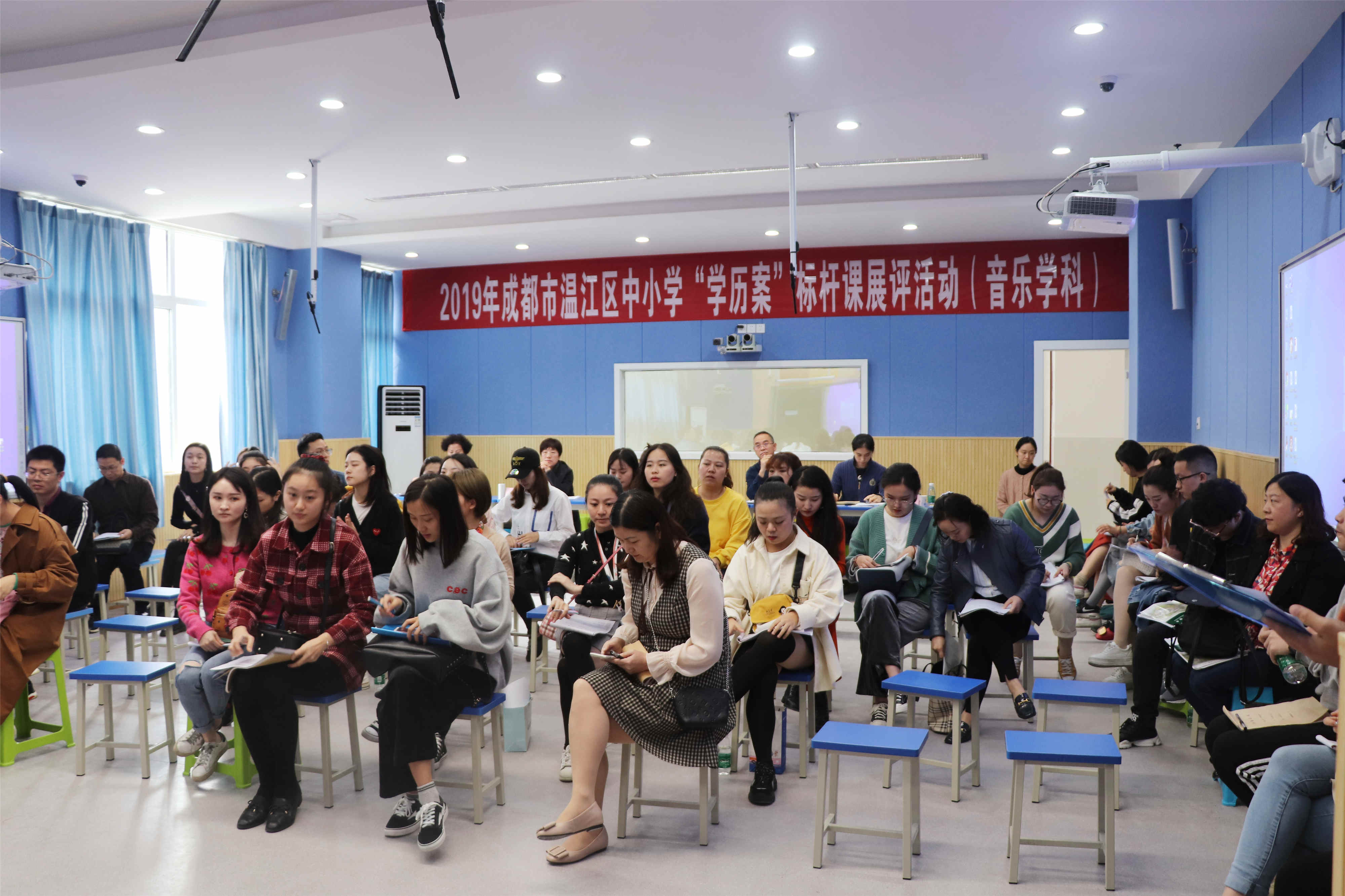 为深入推进“学为中心”课堂变革,打造基于“学历案”的三学课堂,有效促进“学历案”的创编与使用。10月18日上午,温江区小学音乐学科“学历案”标杆课展评活动在政通小学通创楼智慧教室隆重举行。成都市特级教师、成都市教研员李萍,温江区教育研究培训中心副主任刘吉全,四川省特级教师张玉荣,成都市特级教师吴尚勇,温江区音乐教研员马玥担任此次展评课活动的专家评委,参加此次活动的还有温江区80余位中小学音乐教师。政通学校陈雪杨老师担任本次活动主持人。
