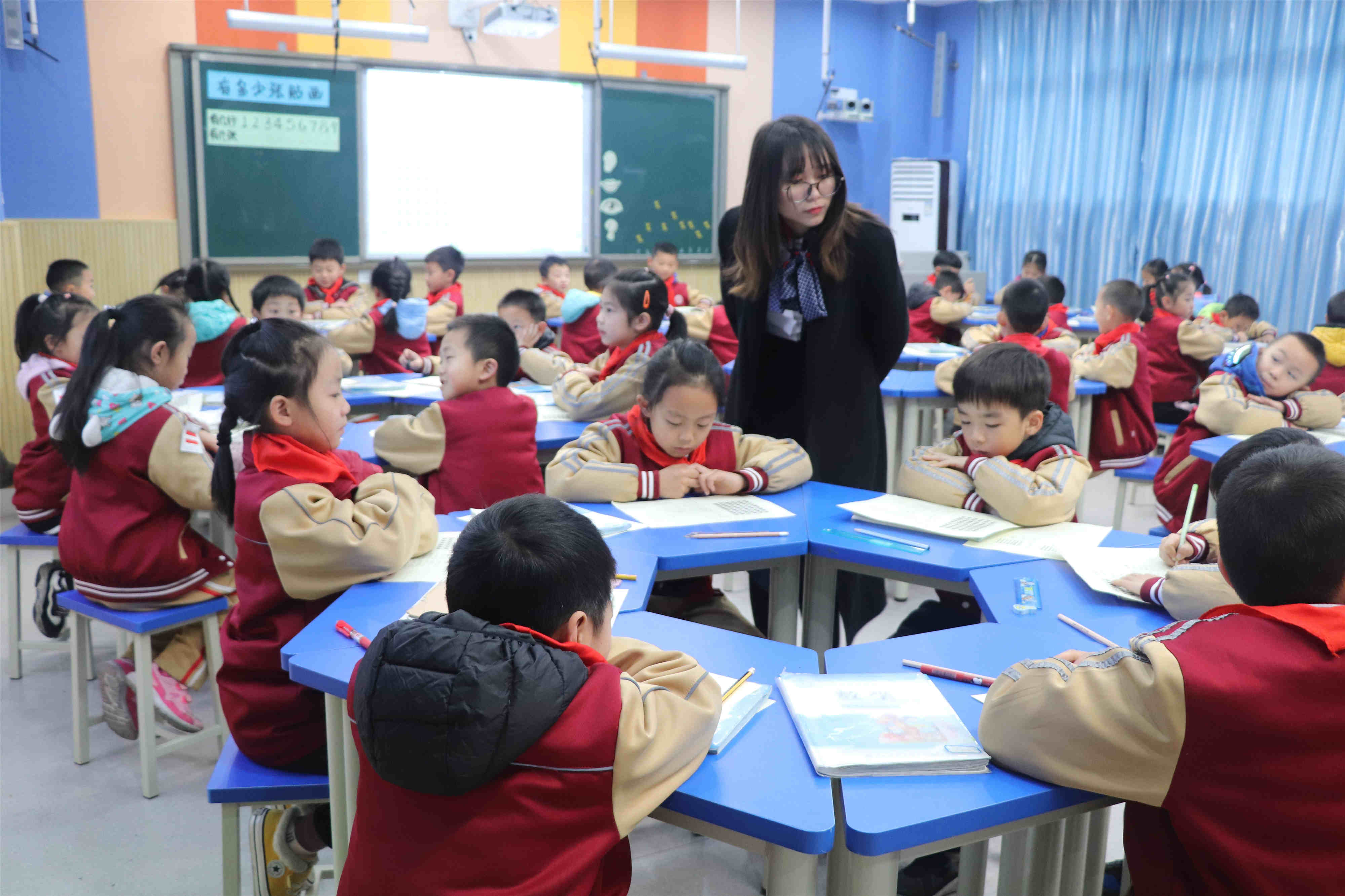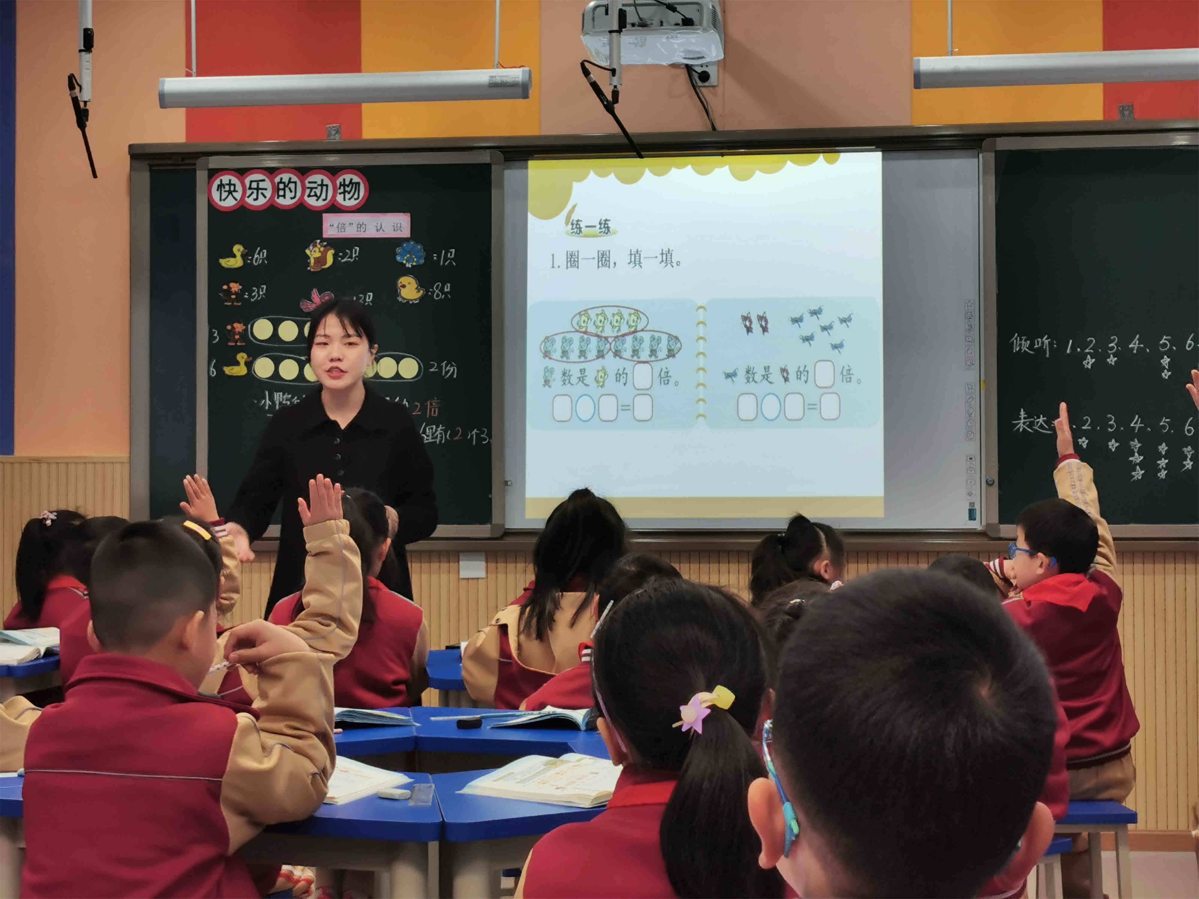 第二节课由嘉祥外国语学校龚玉涵老师执教《有多少张贴画》。龚老师用“小青蛙找妈妈”的情景导入,活跃了课堂气氛,接着引出本节课课题“有多少张贴画”。在课堂中,龚老师能够充分利用儿童的心理特点,创设学生喜爱的学习情境,并且设计多元的评价方式,让学生会倾听、会表达、会观察、会思考,从而提高了学习能力。