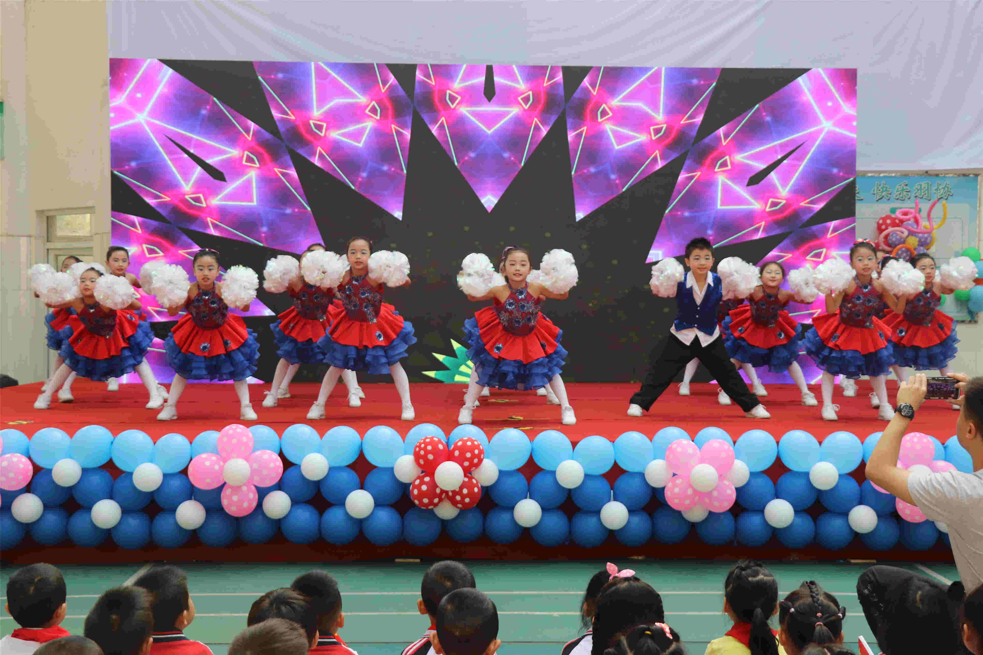 啦啦操,是一项深受孩子们喜爱的、普及性极强的运动,它集体操、舞蹈、音乐、健身、娱乐于一体。啦啦操社团是一个团结的集体,在这儿不仅能展现无限的青春活力,还可以尽情释放激情,跳出自信。快瞧,他们优美的姿态;他们自己编排的队形