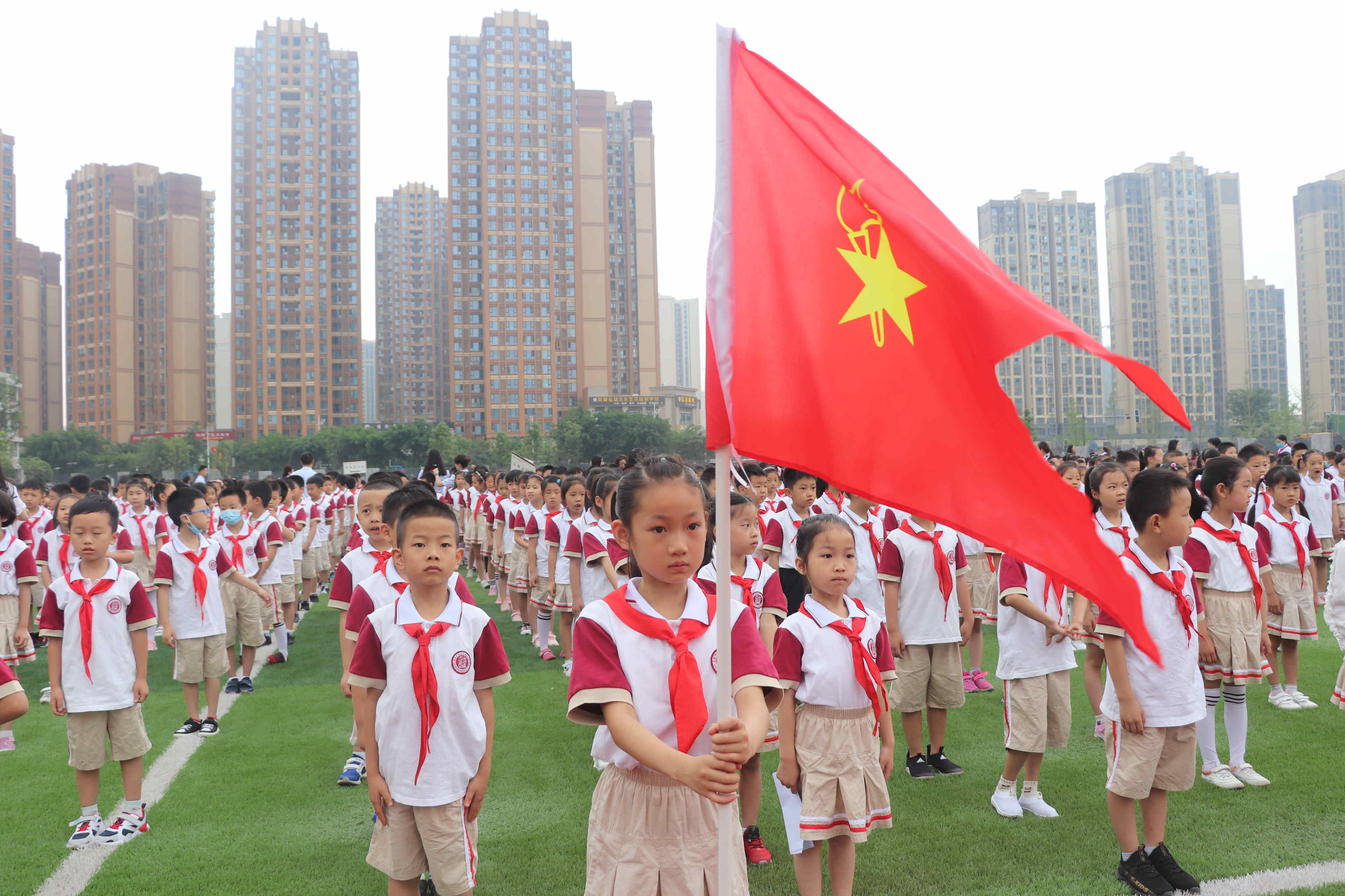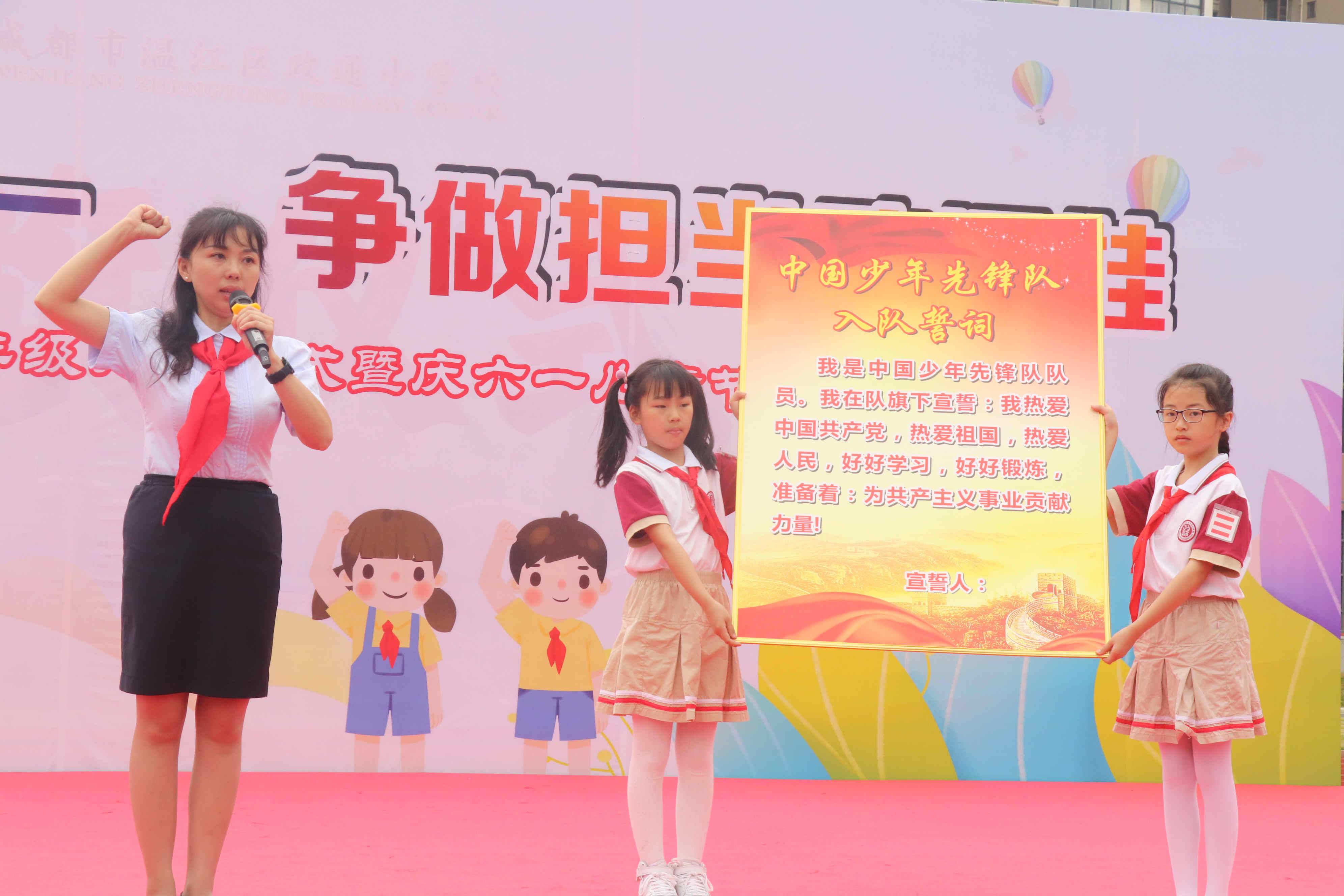 6月1日上午,一年级全体学生迎来新队员入队仪式。