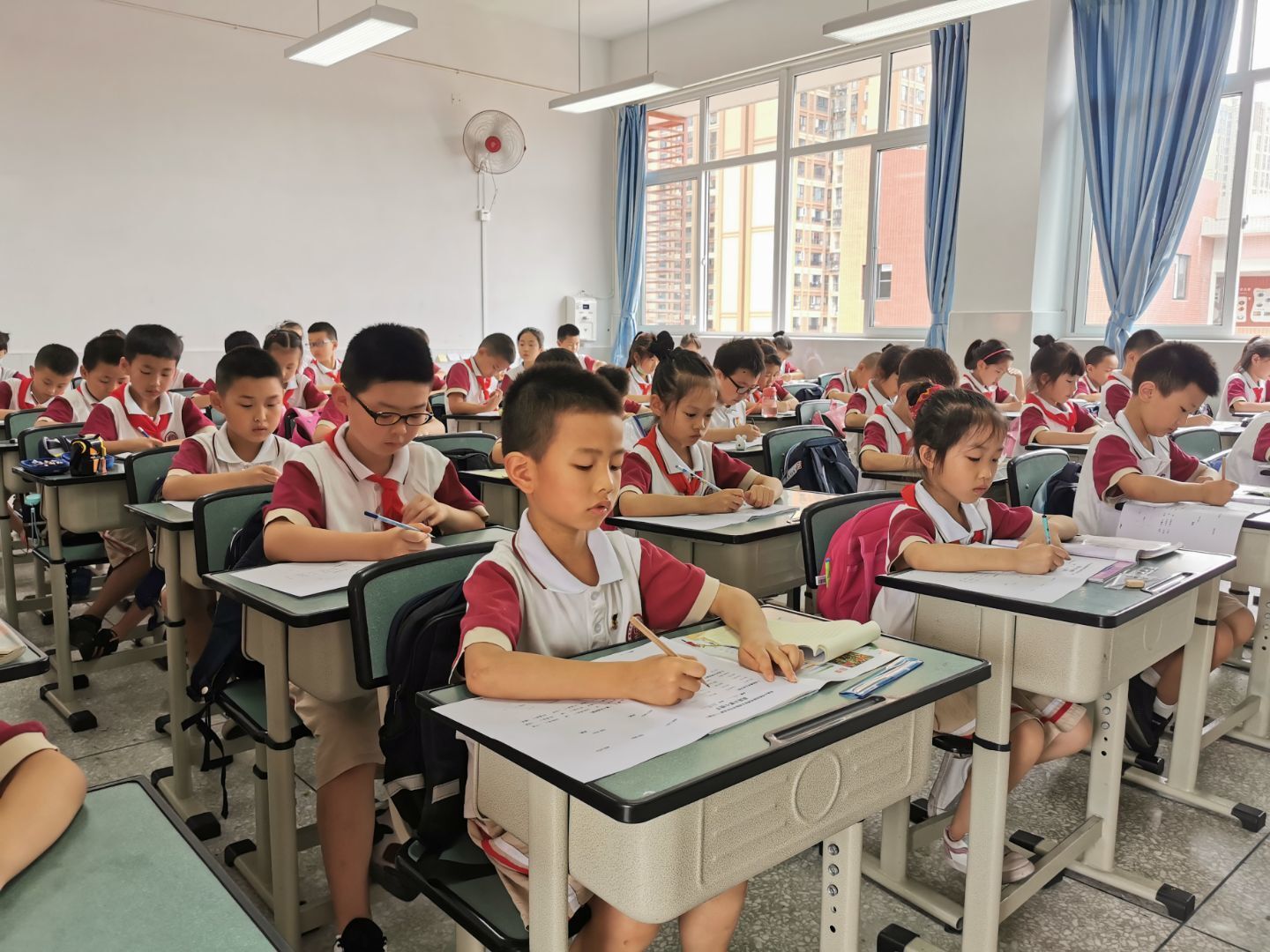 竞赛开始,监考老师一声令下,全场突然变得特别安静,只见孩子们个个都专注认真,细心思考,工整书写,耐心检查……时间转瞬即逝,从孩子们紧张的表情中,可以感受到他们奋勇争先的决心和信心。