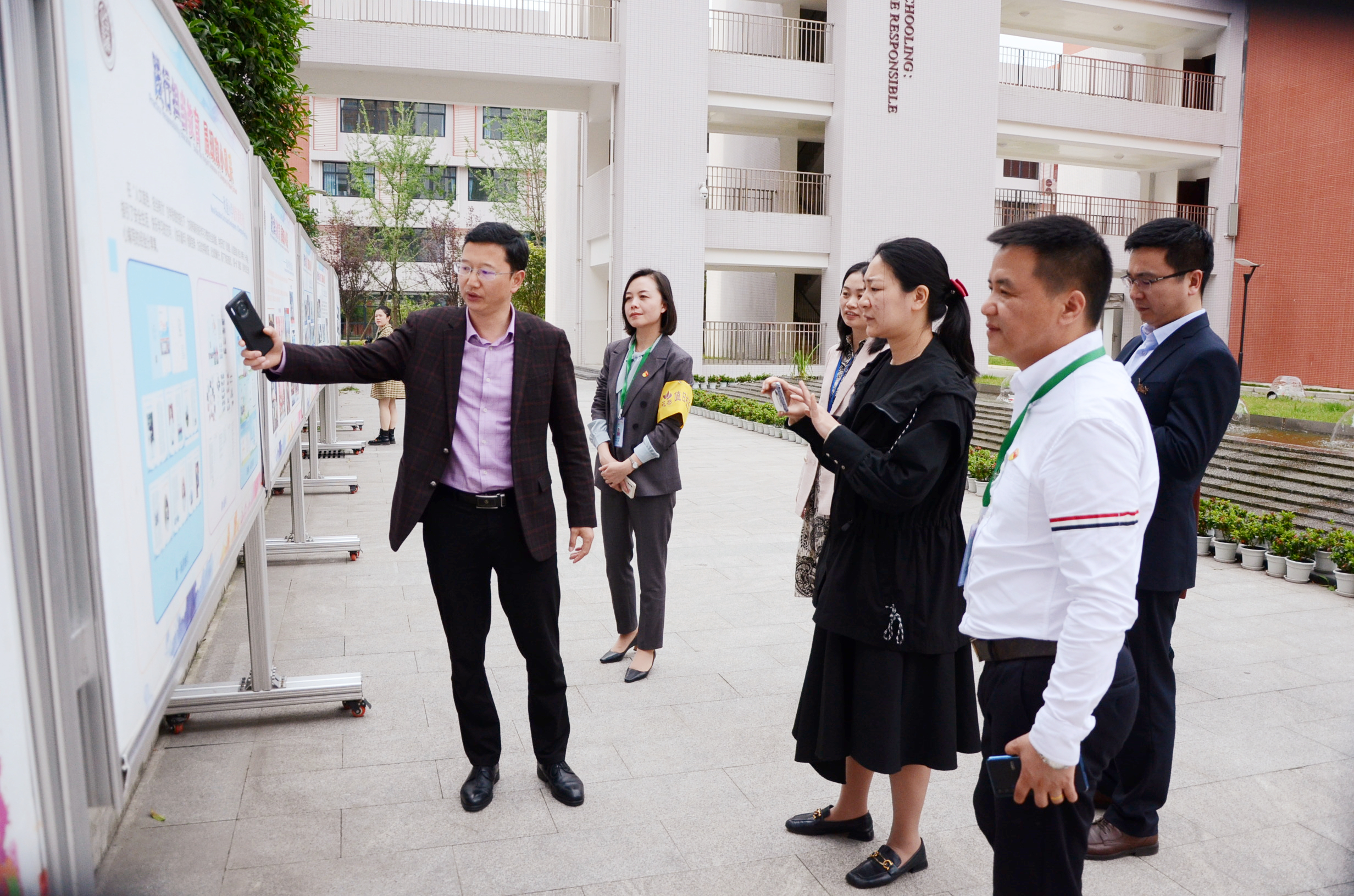 在国际文化门厅的学生个人书画展前,一幅幅色彩斑斓的油画,苍劲有力的隶书,让来宾们纷纷驻足观看。学校积极探索和落实“五育并举”教育方针,为学生搭建多样化舞台,充分展示其艺术特长和精神风貌的创新举措,给大家留下了深刻的印象。