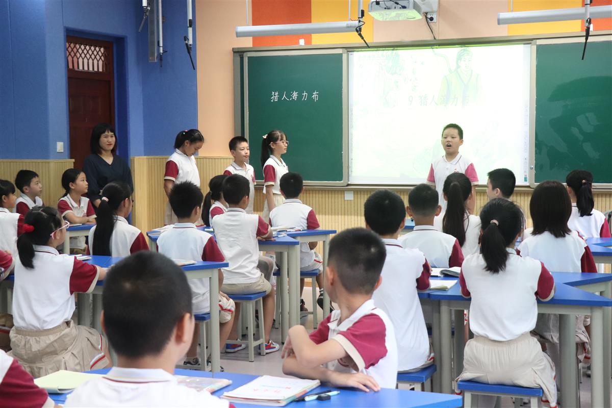 随后,在五年级七班雷春叶老师执教的担当课例《猎人海力布》中,孩子们流畅的语言、得体的仪态、有序的合作和独立完整的结构化表达充分体现了一年来学校“担当”课堂教学改革的成果,进一步落实“以学生为主体,把课堂还给学生”的具有政通特色的新时代教育理念。