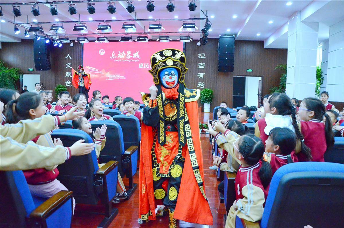 民乐合奏《花好月圆》《彩云追月》《步步高》孩子们积极参与互动,成都乐团的老师为大家普及着二胡、中阮、笛等乐器知识。唢呐是我国传统吹管乐的一种,音色十分激昂豪迈,孩子们领略着它独特的艺术魅力。川剧和木偶戏巧妙结合,精彩纷呈、趣味十足的表演再次点燃现场的气氛,孩子们的欢呼声此起彼伏。时而飞扬跳脱,时而深沉悲壮,极具表现力的二胡演奏赢得了师生们的连连喝彩。《战马奔腾》孩子们认真聆听,感受着骑兵战士为保卫祖国,英勇顽强、一往无前的战斗精神。伴着葫芦丝悠扬婉转的曲调,师生们挥舞着双手,即兴跳起舞来。在这场民乐盛典中,国乐的美正在被强化和释放,师生们陶醉其中,汲取中华文化艺术的精髓。