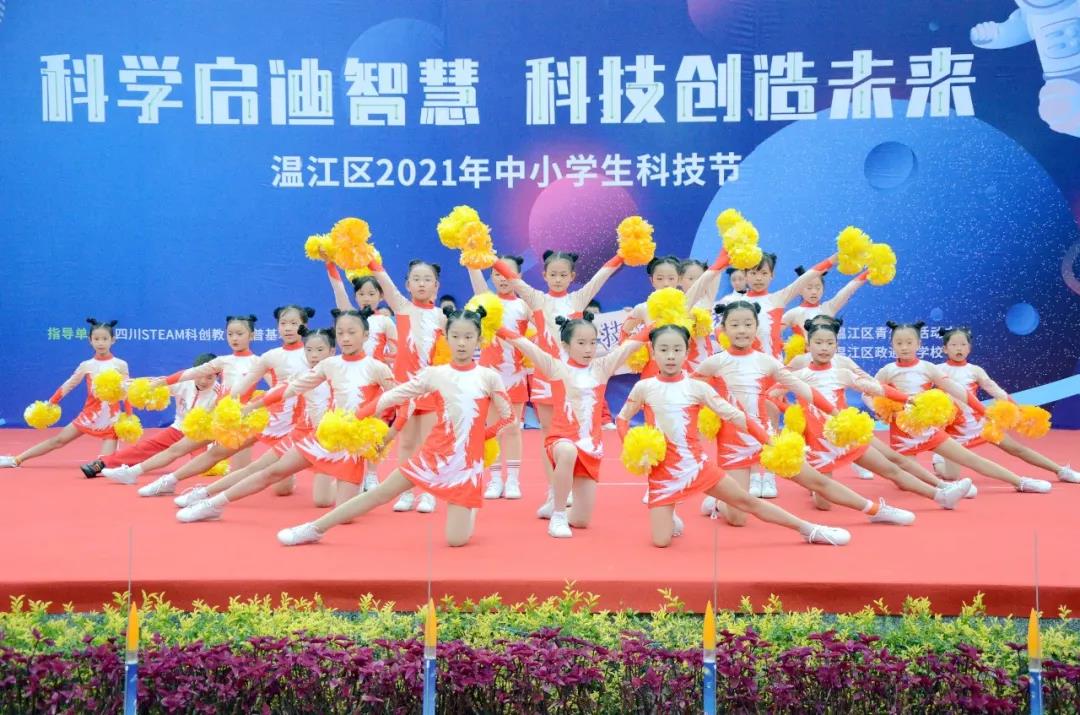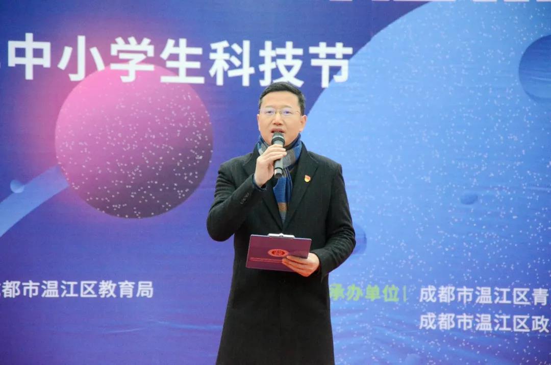 12月7日,温江区2021年中小学生科技节在政通小学举行。成都师范学院物理与工程技术学院院长杨果仁、四川STEAM科创教育科普基地办公室主任袁颖、成都师范学院物理与工程技术学院汽车系主任蔡顺燕、温江区青少年活动中心陈显文老师、王永莉老师以及区内各参赛学校出席活动。