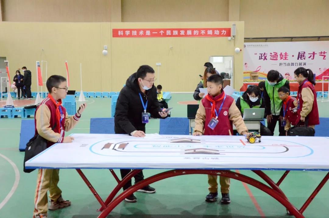 在创意拼搭、智能小车、无人机、Scratch创意编程等比赛中,政通娃屏息凝神,全神贯注,力争赛出佳绩。