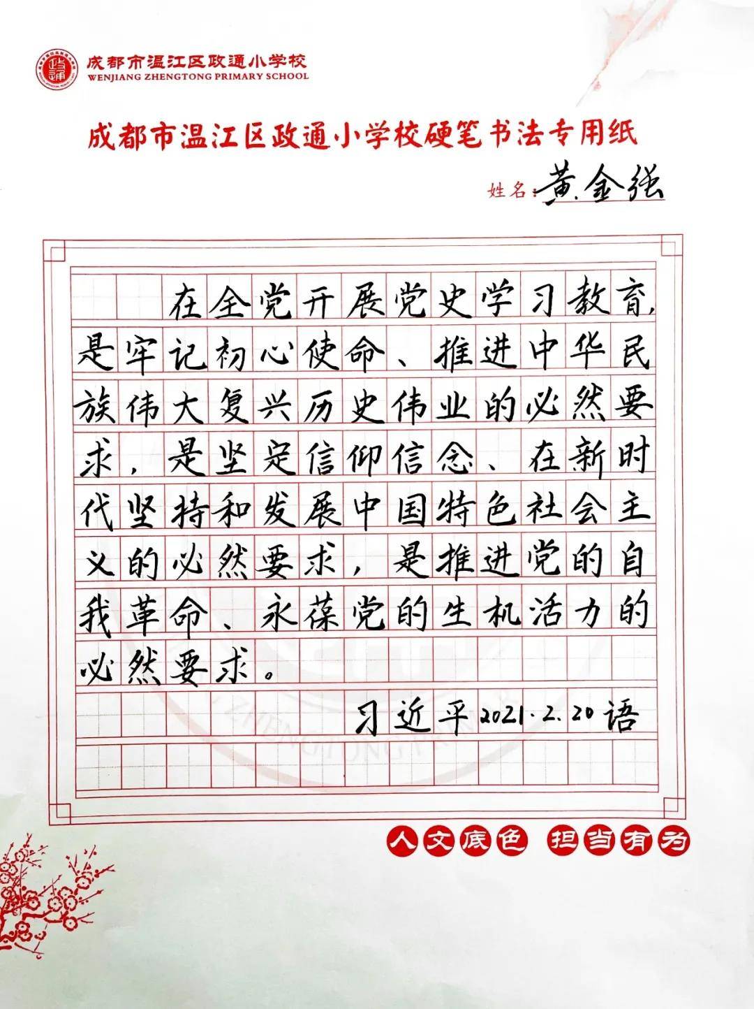 为庆祝中国共产党成立100周年,认真贯彻落实习近平总书记在党史学习教育动员大会上的重要讲话精神——“抓好青少年学习教育,让红色基因、革命薪火代代传承”,近日,政通小学举行了“翰墨书党史,书法展初心”师生书写比赛。