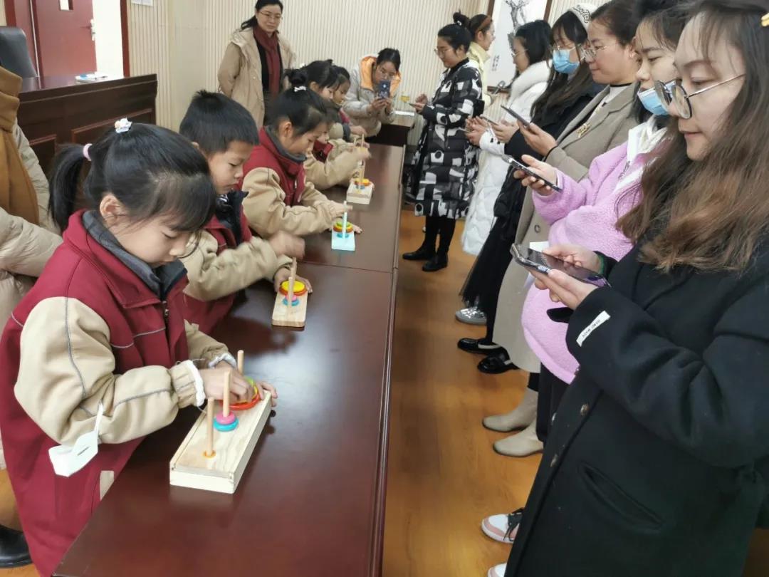 汉诺塔是一款经典的益智类游戏,它规则简单,容易上手,游戏的趣味性,灵活性和多变性。能极大地激发学生的动手兴趣和探索欲望。玩转汉诺塔,可以增强孩子的颜色辨识能力,提高孩子的创造能力,增强孩子的动手能力,提高孩子的逻辑思维。你看,孩子们玩得不亦乐乎,你听,教室里笑声不断,乐趣不断!