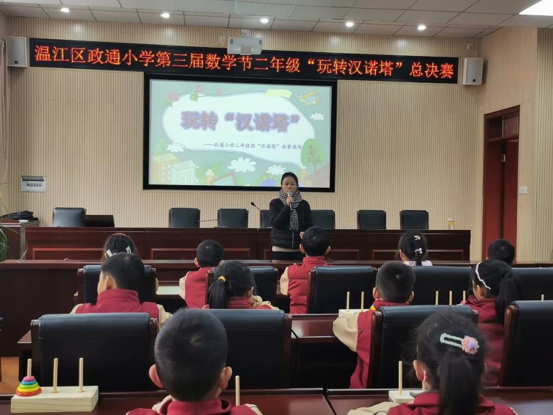 你认为数学本该枯燥无味,呆板抽象?不不不!当数学遇上游戏,当二年级的孩子遇上汉诺塔,碰撞出激情的火花,一场关于数学的奇妙之旅悄悄启动了。为了丰富学生的课余生活,进一步开发学生的智力,激发学生爱数学,学数学的兴趣,政通小学第三届“我爱数学  数学好玩”数学节开始啦!