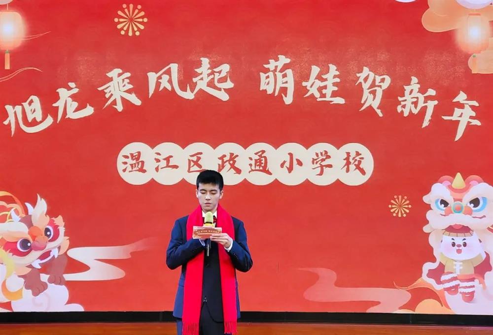 玉兔回天,捷报频飞翻妙曲;骊龙出海,雄图欲动赋新篇。学校党支部书记、校长黄金强在致辞中从国家、学校、学生三个层面,回眸了师生砥砺奋进的2023年,并鼓励学生勤学上进,以崭新姿态迎接新年的到来。