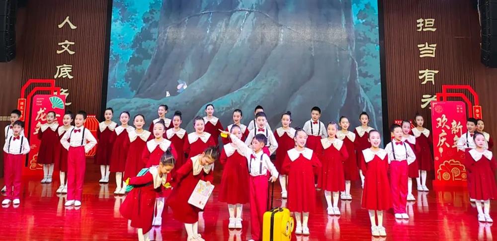 政通娃和着美妙的音乐、悠扬的旋律,放声歌唱、翩然起舞,表达对新年的憧憬。