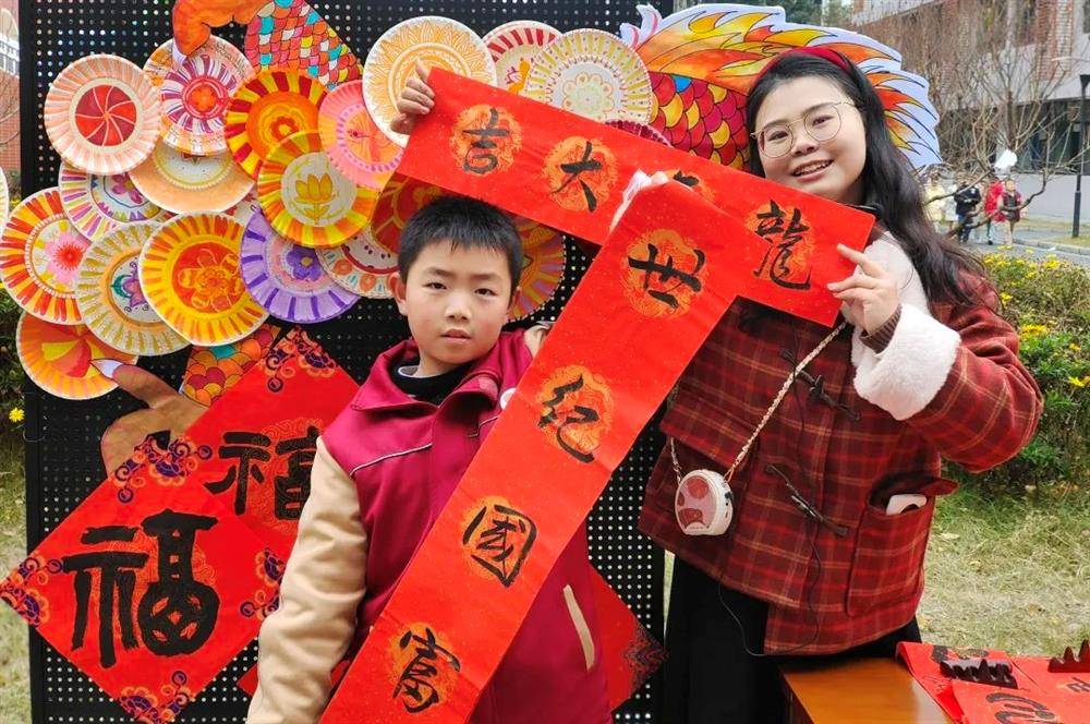“快来看看呀!黄校长创作的春联作品,让你的春节时光年味十足!”“校园农场大丰收,纯天然、无公害的蔬菜,大家快来兑换呀!”……由家长志愿者和师生代表组成的售货员队伍卖力地吆喝着。1月4日,政通小学开展了第十期“担当小集市”,行知大道上一派热闹的景象。